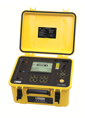 专门适用于检查12KV或更高操作电压的旋转电机和机械装置的绝缘电阻,C.A 6550符合IEEE43标准中5-10KV绝缘测试。