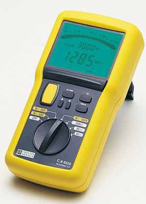 | CA6525是一款用于测量绝缘电阻、导通性、电压及电阻的电子式绝缘电阻表。其绝缘电阻测量电压有250、500 及 1000V三个档位,同时包含600V AC/DC电压测量功能,可自动探测并精确显示被测电路电压值。如果被测物具高于25V的电压时,CA6525会发出音频告警和警示图标,并禁止进一步绝缘测量,以保护用户和仪表的安全。