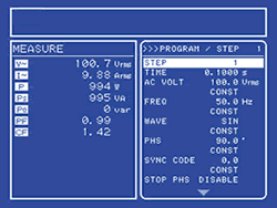 | 本产品具有高精度的测量功能,不仅能精确测量电压和电流,还可以测量频率、负载的功率因数和峰值系数(CF)以及谐波电流。在大型显示屏(5.7英寸)上,同时显示出设定值和测量值,具有良好的视觉效果。 |