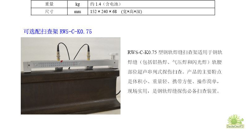 u 小体积—整机的外形尺寸为152mm × 240 mm × 68mm (宽×高×深),在5.7英寸显示器的钢轨焊缝探伤仪中,其体积最小;