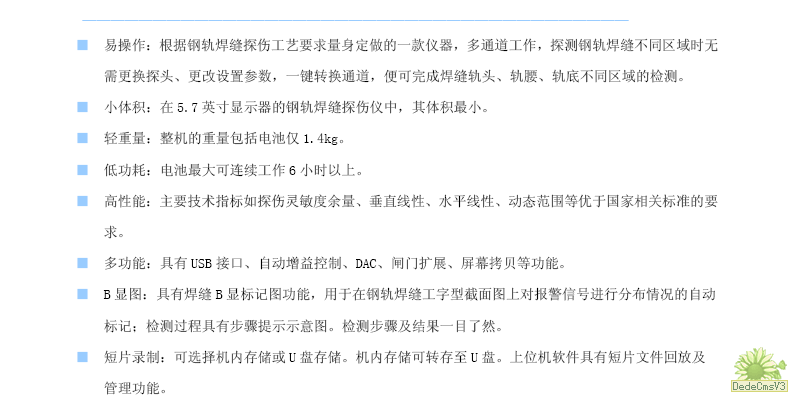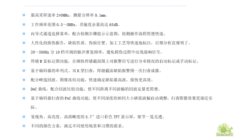 u 高性能—主要技术指标如探伤灵敏度余量、垂直线性、水平线性、动态范围等大大超过国家相关标准的要求;