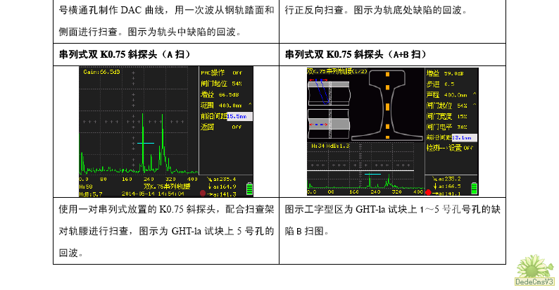 1) 钢轨焊缝检测、缺陷定位和回波评价,以及钢轨非焊缝部分的探测。