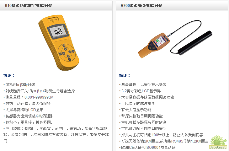 探测电离辐射并具有识别、计量等功能的仪器和装置的总称。用于发现放射性沾染,测量沾染区的γ剂量率,测量人体、装备和各种物体的表面放射性活度,概略测定粮秣、蔬菜的比活度和水的体活度。辐射仪是根据核快速应急反应监测技术要求,专门为核医学、分子生物实验室、核材料运输及其它存在α、β表面沾污和χ、γ辐射的方面而设计,是一种高灵敏度智能化便携式多功能仪器。它兼具表面沾污监测仪和χγ剂量率仪两种仪器的功能,既可用来测量α、β引起的表面沾污,又可用来测量