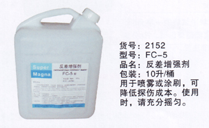 在表面粗糙的焊接件或铸钢件磁粉探伤时,由于工作表面凹凸不平,或者由于磁痕颜色与工件表面颜色对比度很低时,会使检出的缺陷难于发现,容易造成漏检。为了提高缺陷磁痕与工件表面颜色的对比度。探伤前可在工件表面上先涂上一层白色薄膜(即:反差增强剂),厚度约为25-45um然后磁化工件、喷洒黑磁粉,缺陷部位的表面磁粉就可清晰可见磁粉堆积指示。具有省时、省工、操作方便、检测结果更加可靠等特点,是磁粉探工作者的好帮手。