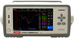 AT4710多路温度测试仪精简于数据记录仪AT4610, 采用高性能 ARM 微处理器及 FPGA 控制的实时高速数据采集的微型台式仪器。仪器采用7英寸高亮度真彩液晶屏,全触控配合辅助功能键操作,使用安柏第7版ATOS操作系统,更易用更智能。 全中文的操作界面和操作说明,实时显示测量数据和曲线图,给您全新的仪器体验。 AT47系列采用实时FPGA电路,突破了采样速率限制,配合高效、高精度模拟电路,实现了高精度和超高速采样,测试温度分辨率提高到 0.01℃,单通道采样速率<50ms . 仪器可以实现混合测试 。AT4710支持多种温度传感器,包括热电偶型号:K、J、E、T、N、 S、B 和 R 型。 同时,为了应用于带电的场合 ,仪器采用高压隔离电路,主控单元与接口单元可以承受 300VAC,允许 通道间的最大可承受 300VDC 电压。 仪器内部有 80MB 大容量数据缓冲器,用来实时记录数据,可以在10ms速率下保存 5.5 小时的数据。 仪器支持4个 USB2.0 主机接口和 1 个 SD 卡接口,可以将实时数据或缓存的数据存储到外部存储器 中。 仪器具有比较器功能,并可选配 Handler (PLC) 接口,输出10通道的不合格信号,RS-232C 接口和 USB232 接口,通过计算机对仪器进行控制盒数据采集,可有效运用于远程控制和数据采集与分析。 仪器使用安柏仪器增强计算机远程控制指令集,兼容 SCPI(Standard Command for Programmable Instrument 可程控仪器标准命令集),高效完成远程控制和数据采集功能。