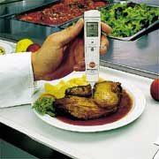 testo 106 食品中心温度计具有响应快、精度高的特点。适用于膳食、旅馆,工业厨房,超级市场等的快速简便的测量。这个紧凑的,实用的温度仪可以“总是在您手边”。由于106的袖珍型的外形尺寸和它非常细且坚固的探头使它很适用于小尺寸食品的测量。