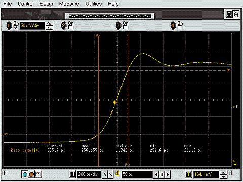 校验垂直放大器、衰减器、数字存储示波器中的模拟-数字变换器以及所有其它垂直偏转电路的瞬态响应。5820A不大于300 ps的快沿对于带宽达1 GHz的大多数示波器来说是绰绰有余的。5820A的5820A-GHz选件可以提供不大于150 ps的快沿,来校验带宽达2.1GHz的示波器。