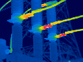 | 使用红外热像仪对钢包、鱼雷罐车和其它有耐火材料的设备和/或构件,及驱动精轧机的大功率电机,进行日常的热测量,可以节省开支,有助于提高钢铁质量,节约了时间和成本。由于其中一个精轧机引起的意外停工将导致每分钟6000美圆的损失。 |