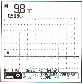 对于ScopeMeter的产品而言,情况则不一样。首先,在屏幕上总有波形来指示你以告知信号是否过载。另外,ScopeMeter从取样的波形数据之中计算真有效值测量数值,只要取样的数值位于A/D转换器的量程之外,则读数不再被显示,而OL则会被指示。例如,Fluke 123在峰值大于8.5V的时候会以5V的量程显示OL。这将会导致完全刻度的波峰因数为8.5/5=1.7。虽然该数值不是很显著,但对于ScopeMeter来说这并不重要,因为该设备不显示不正确的读数。另外,当使用在自动的模式的时候,它会自动地变换到下一个较高的量程。(ScopeMeter可以同时测量峰值和有效值)